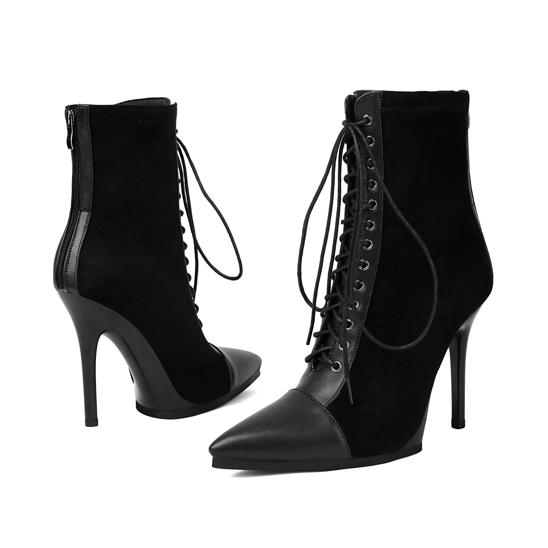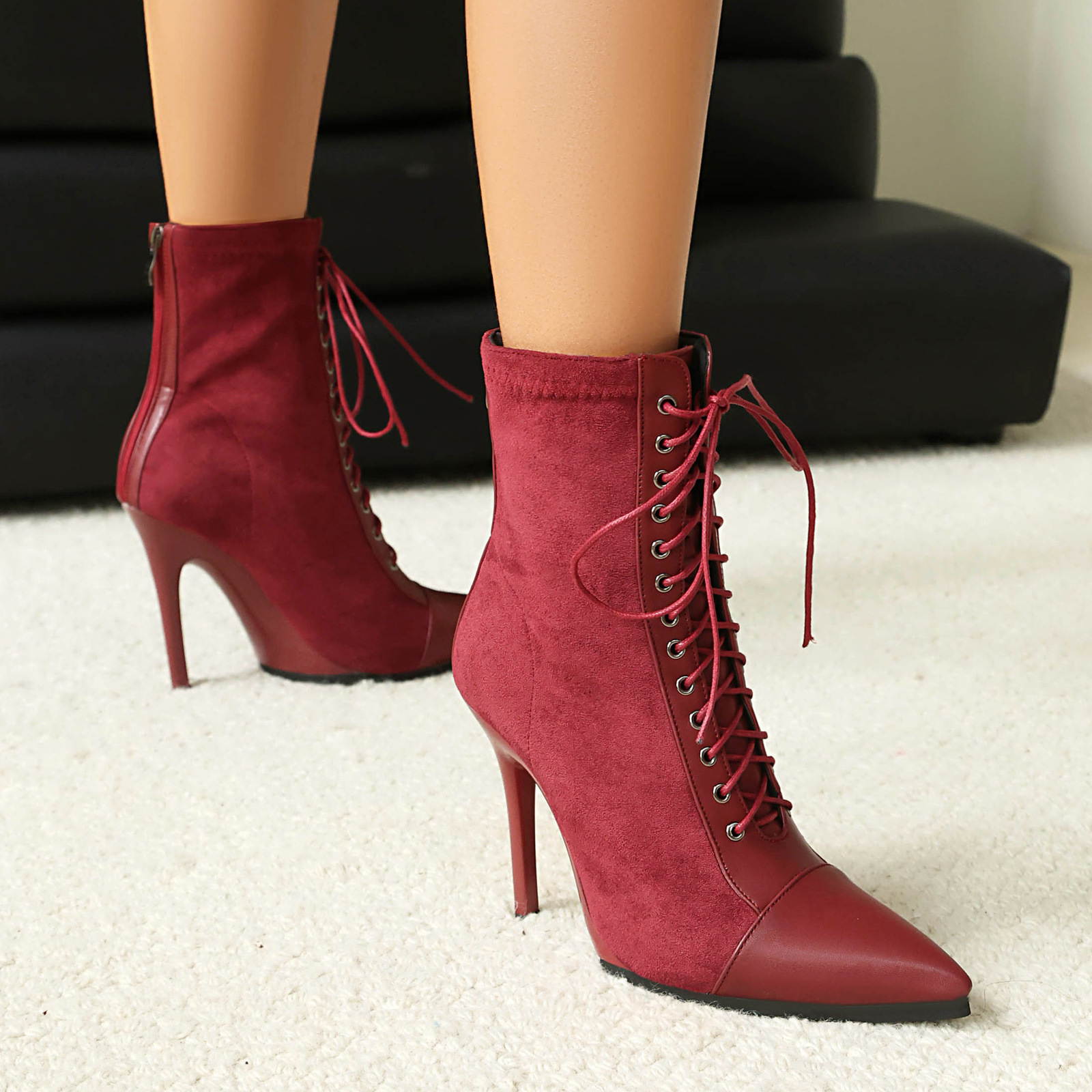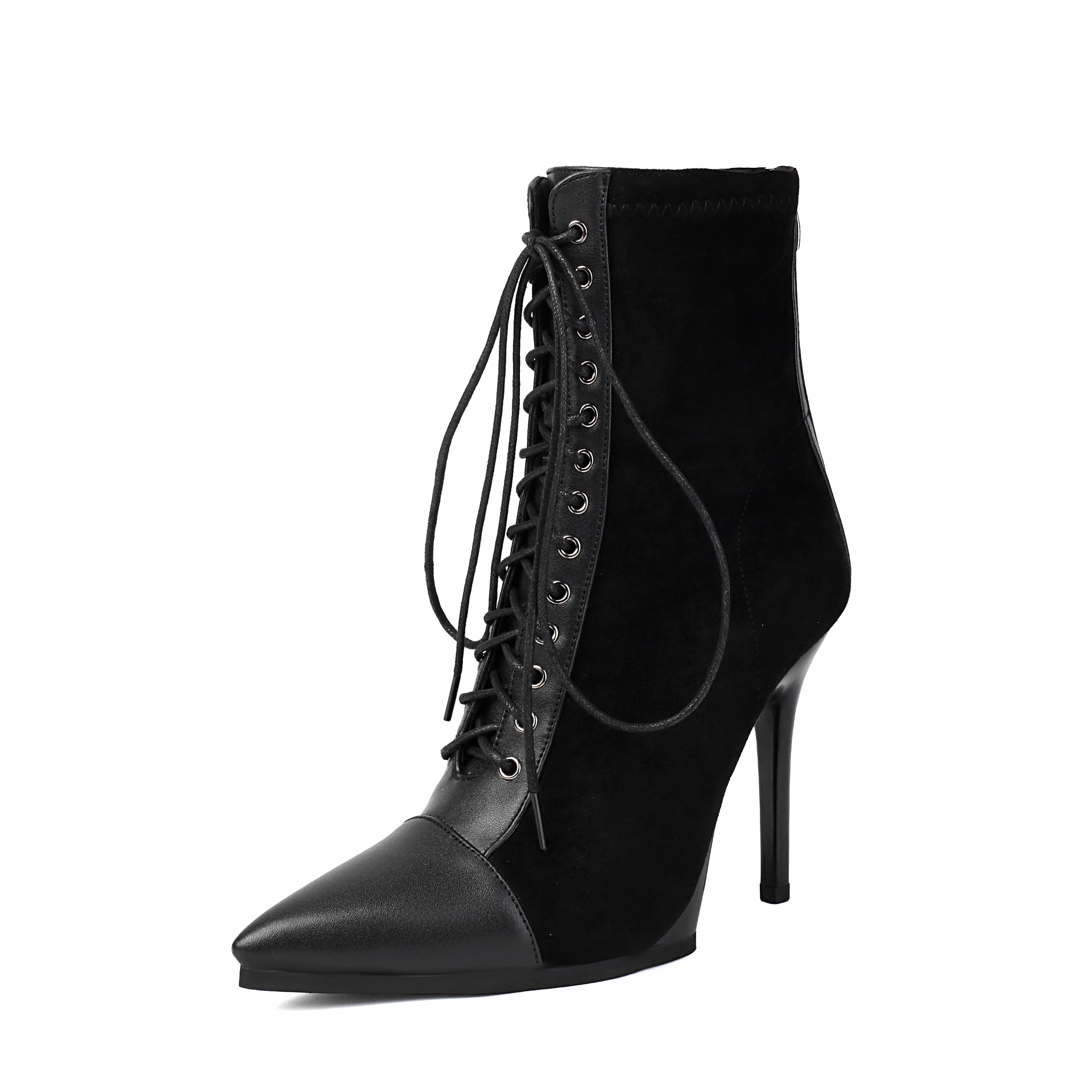 Product information:Pattern: solid color Lining material: Cotton Color: Black, Brown, wine red Socks length: low tube Heel shape: stiletto heels Size: 35, 36, 37, 38, 39, 40, 41 Sole material: rubber Popular elements: leather stitching Toe bracket shape: Tip Shoe Upper material: Suede Wearing method: back zipper Applicable Gender: Female