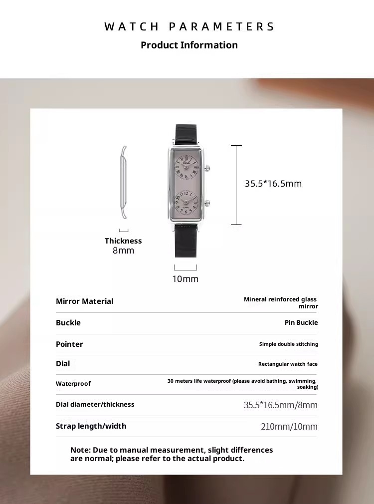 Product information:Color: gray black ribbon, gold coffee belt, platinum black ribbon Weight: 200g Style: Fashion Width: 10mm Mirror material: ordinary glass mirror Watchcase material: Alloy