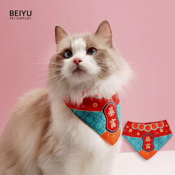 New pet saliva towel, triangular scarf, printed scarf, neck cover, accessories, cats and dogs, national trend, fun and soft
