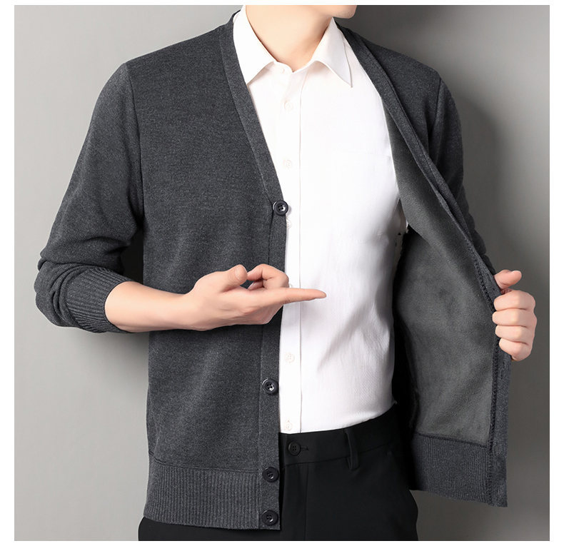 Product information: Color: navy blue, caramel, beige, light gray, dark gray, black Size: M,L,XL,2XL,3XL,4XL Style: Cardigan Thickness: wool lining Fabric name: cotton blend Main fabric composition: Polyester Fiber (polyester) Sleeve length: long sleeve