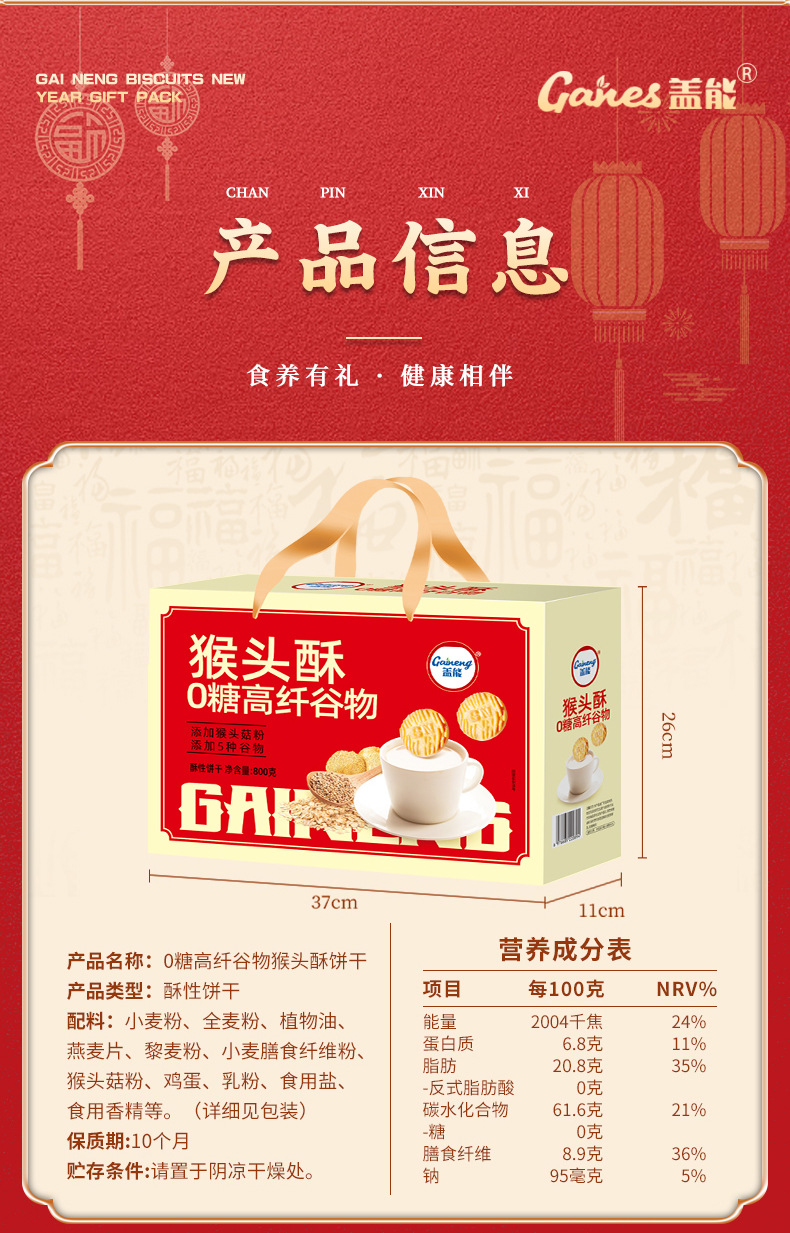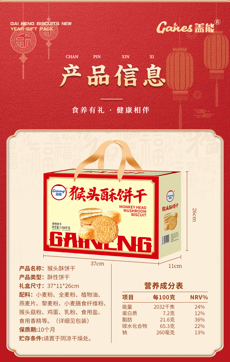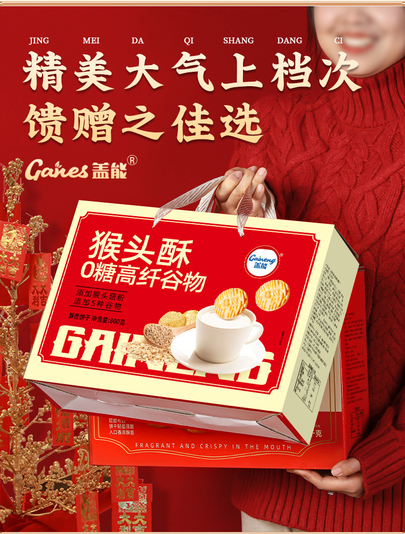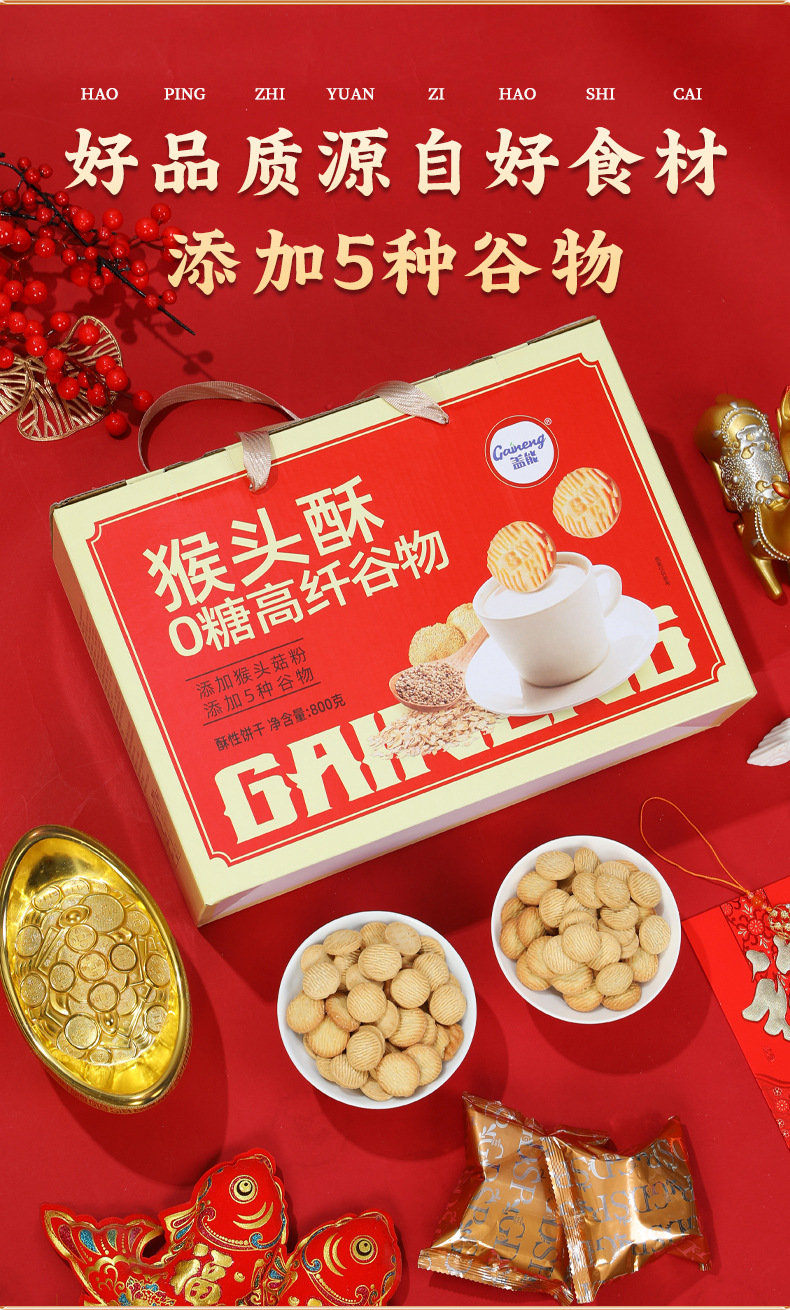 New Year's gift box, lion's mane mushroom biscuits, gift box, New Year's gift, elder gift, sugar-free food wholesale