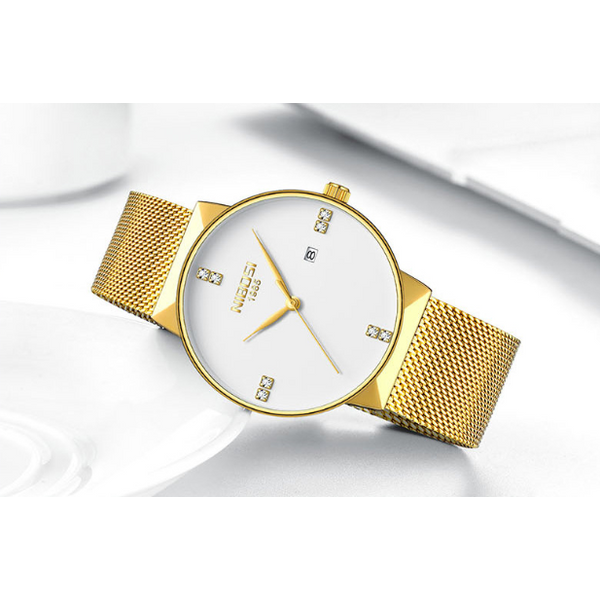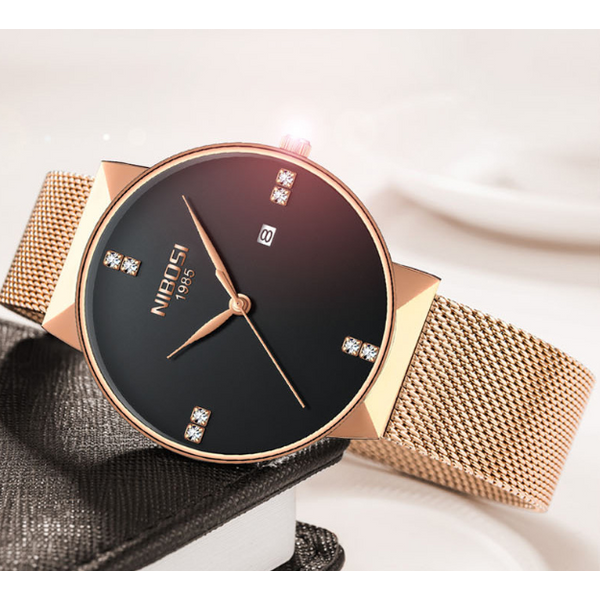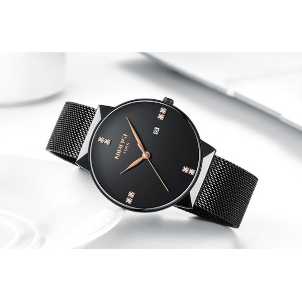 Movement: quartz movement Mirror: mineral tempered glass Dial diameter: 41.5mm Dial thickness: 9.5mm Case material: alloy case Strap: Mesh belt series Plating: IP vacuum plating Life waterproof: 30 meters
