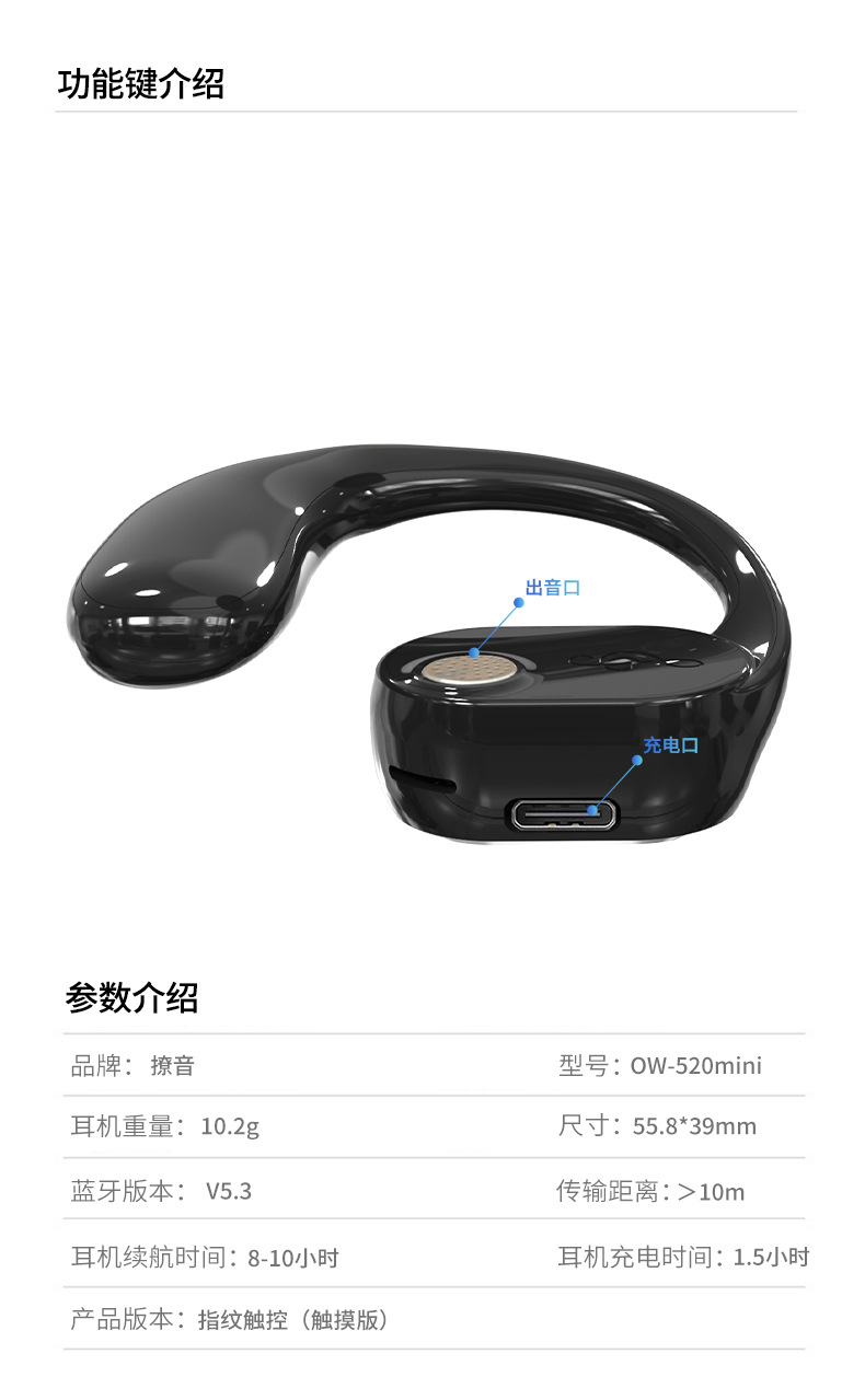 OW-520mini open-back bluetooth headset air bone conduction wireless earhook ultra-long battery life 2023 new
