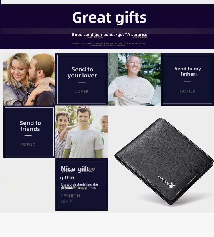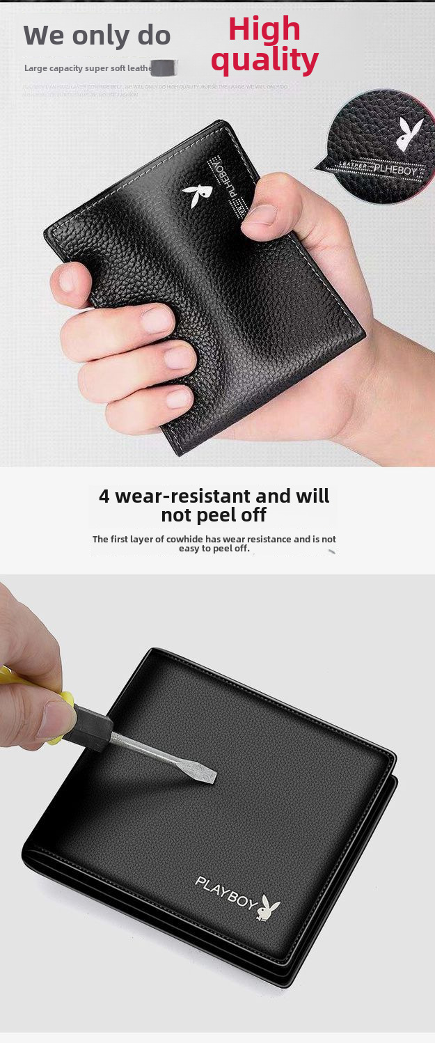 Playboy brand authentic men's wallet short fashion stitching multi-card position wallet trend leather ticket holder
