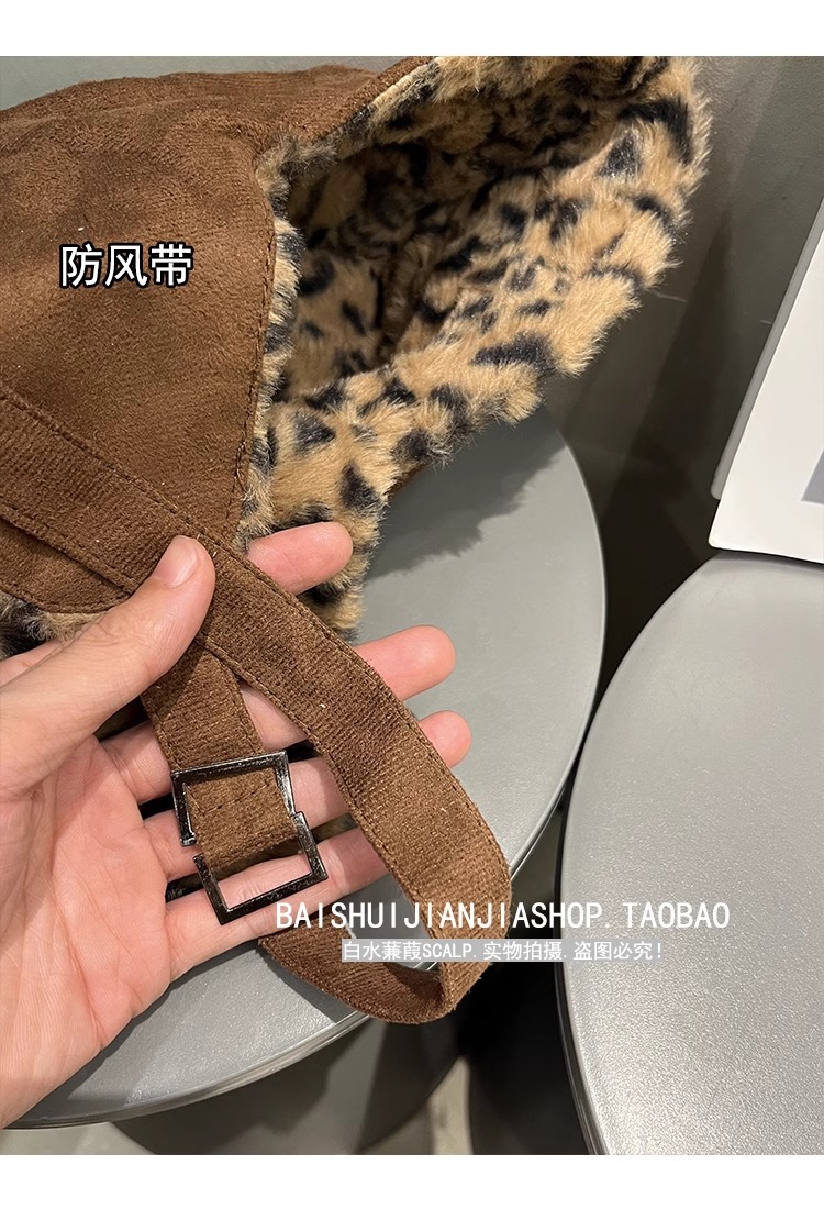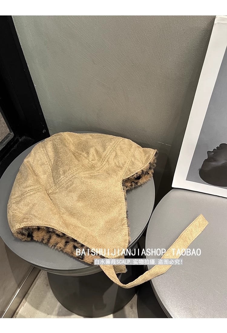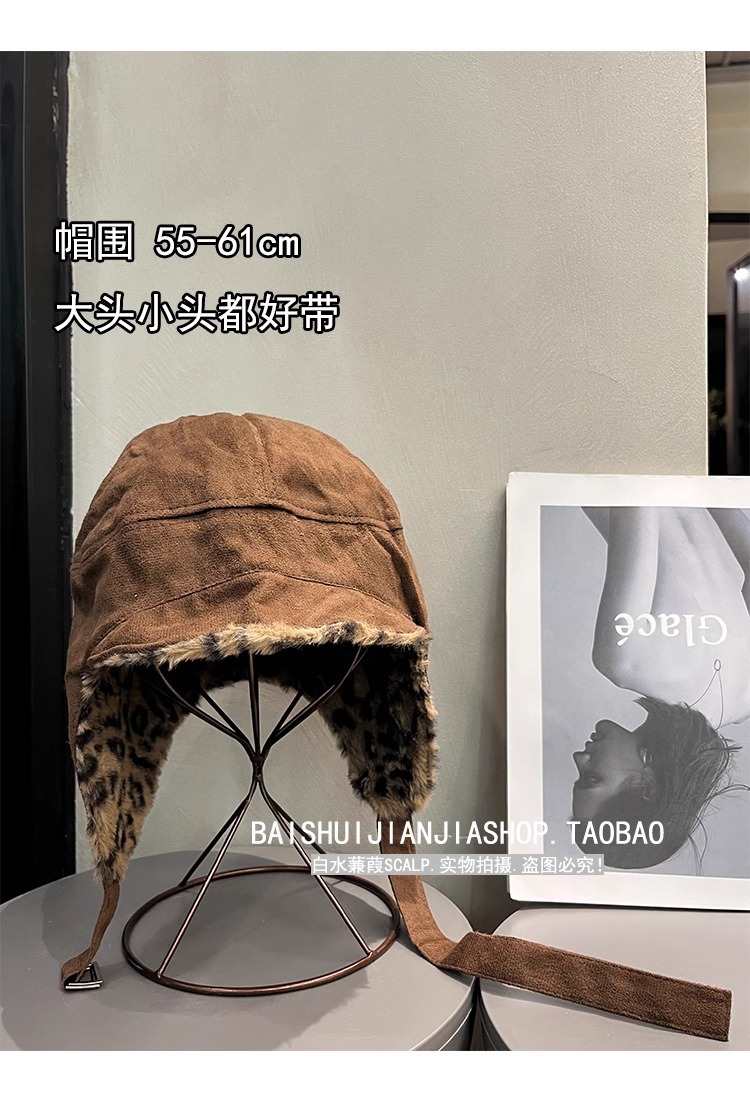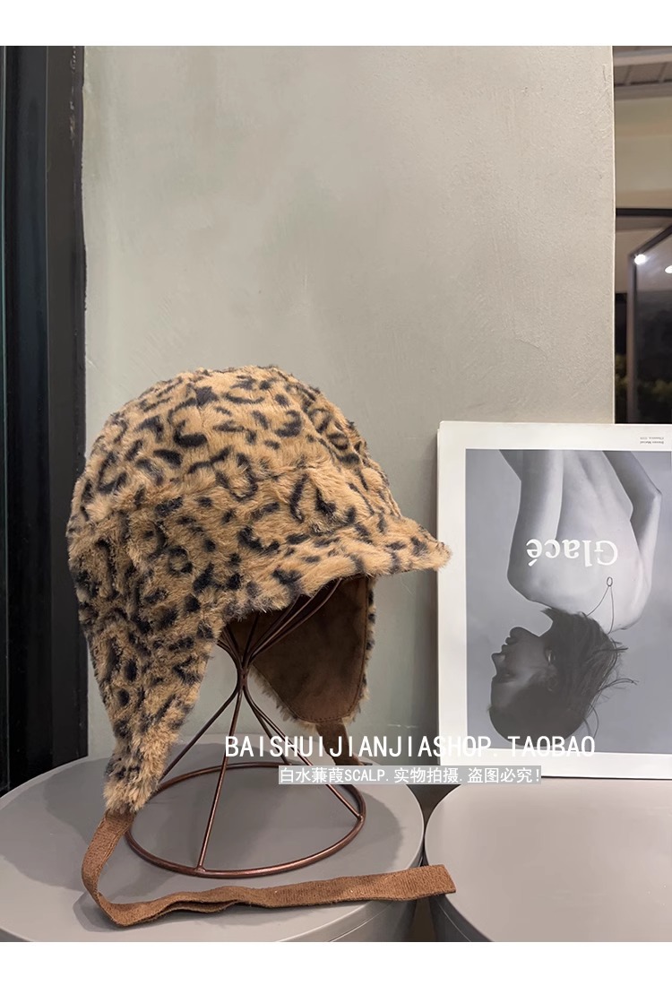 Retro autumn and winter warm leopard print Lei Feng hat female plush cycling ear protector big head circumference bomber hat male face small