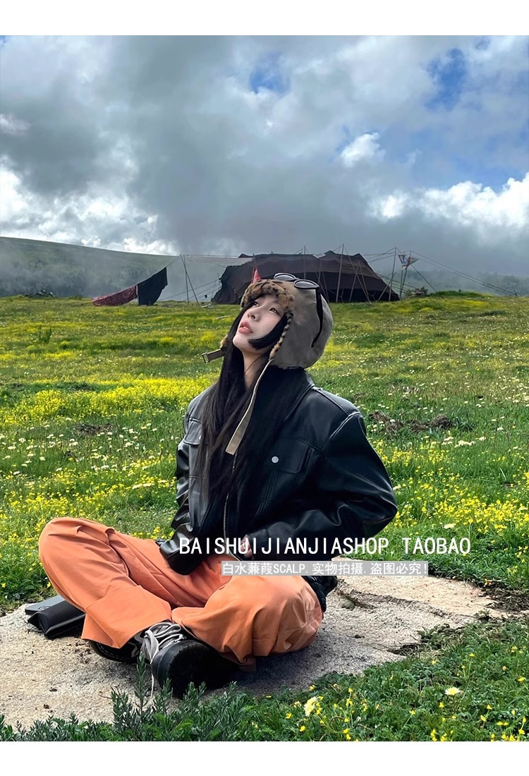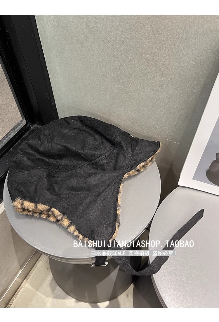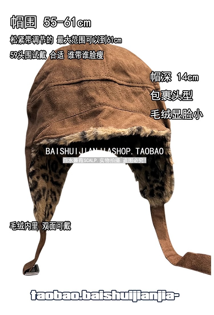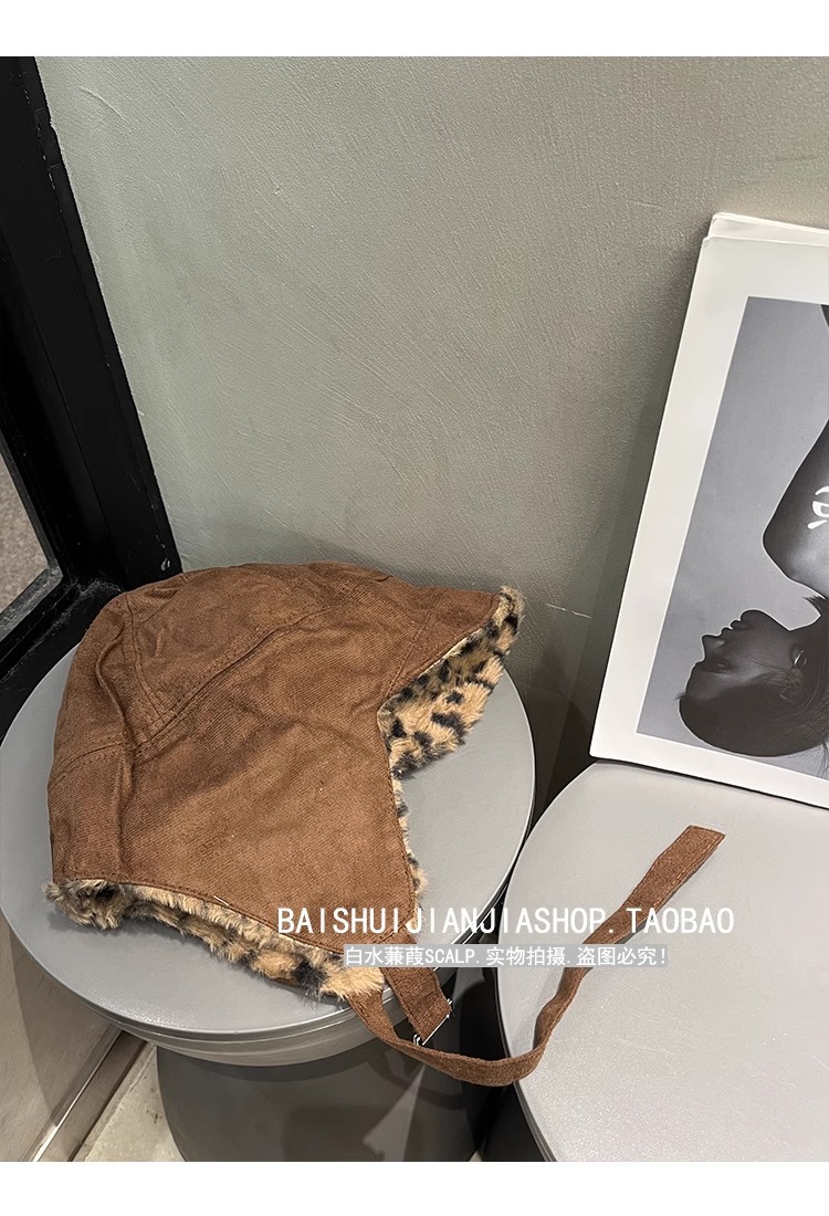 Retro autumn and winter warm leopard print Lei Feng hat female plush cycling ear protector big head circumference bomber hat male face small