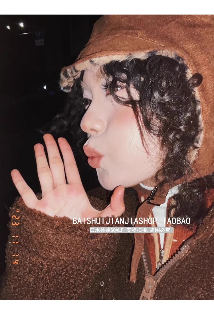 Autumn and winter thickened plush big head circumference fisherman hat female cute Japanese versatile basin hat to show the face of a small warm ear cover cold hat
