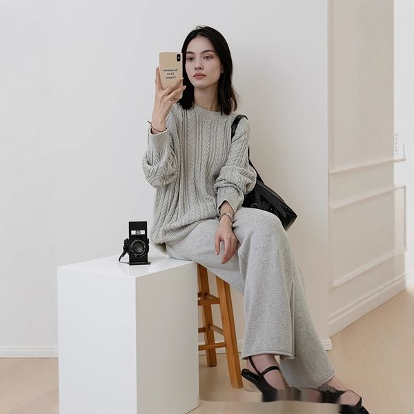 Product information: Pattern: solid color Fabric name: Cotton Color: beige, light gray Sleeve type: long sleeve Pants length: trousers Main fabric composition: Cotton Size: average size Applicable Gender: Female Style type: Japanese and Korean casual Sleeve length: long sleeve Popular elements: Fashion