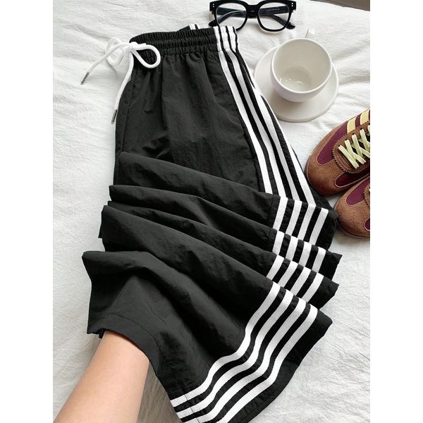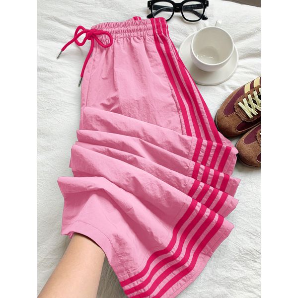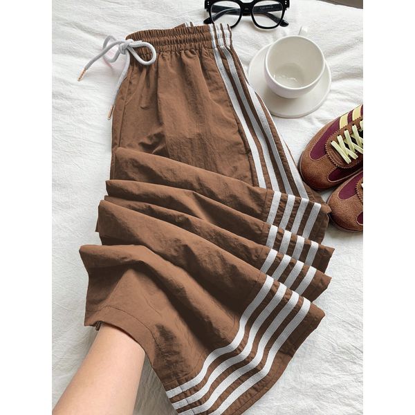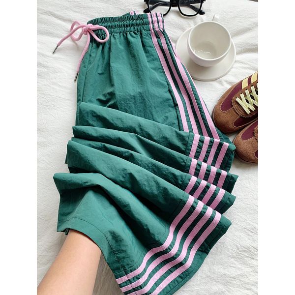 Product information: Color: green, black, brown, pink, blue Elasticity: no elasticity Pants length: trousers Waist Type: Mid waist Size: S,M,L,XL Style type: Japanese and Korean casual Style: wide leg pants Thickness: Conventional Fabric name: woven fabric Main fabric composition: Polyester (polyester fiber) Applicable Gender: Female Pants type: loose type Style: casual style