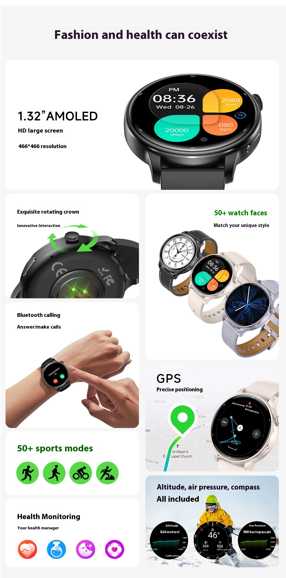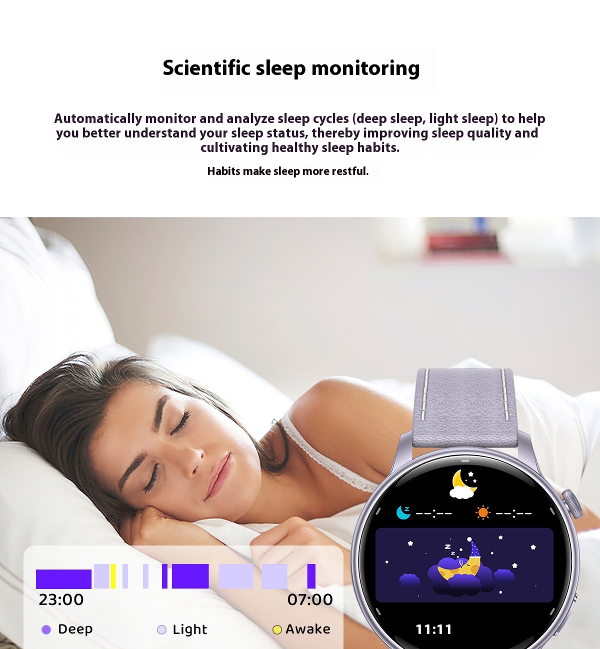 Product information:Color: black, beige, purple, black rubber band, M White tape, purple rubber band Operation mode: touch button Screen Type: AMOLED Battery life: 7-14 days Functions: Waterproof, photo taking, step counting, heart rate monitoring, blood pressure measurement, social entertainment, Bluetooth call, smart reminder, remote control selfie, sleep monitoring, blood oxygen detection