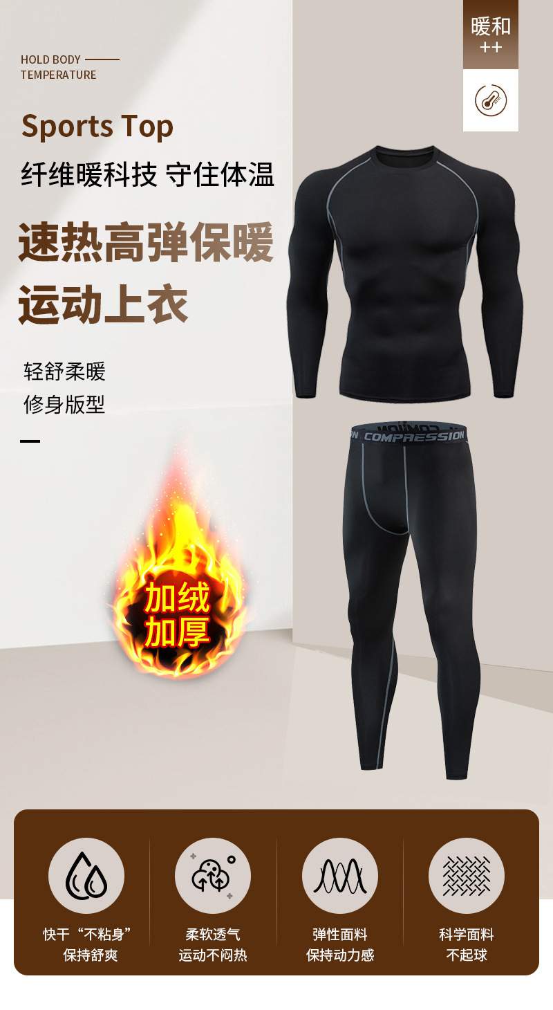 Sportswear men's quick-drying gym clothes autumn winter running fleece long sleeve trousers thermal leggings basketball tights