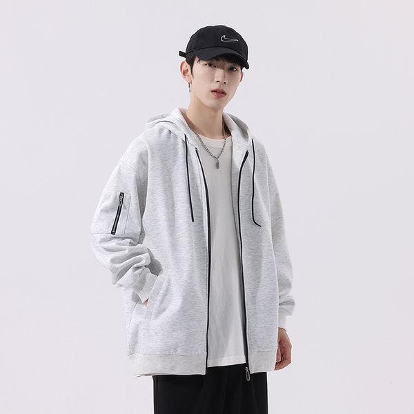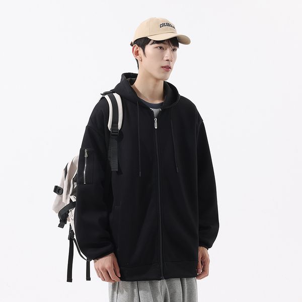 Product information: Pattern: solid color Color: black, gray, dark blue No liner: no liner Suitable for people: Teenagers Size: M,L,XL,2XL,3XL,4XL,5XL Version: Loose Style: Cardigan Thickness: ordinary Fabric name: Polyester Fiber