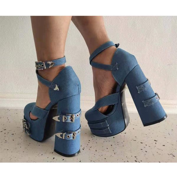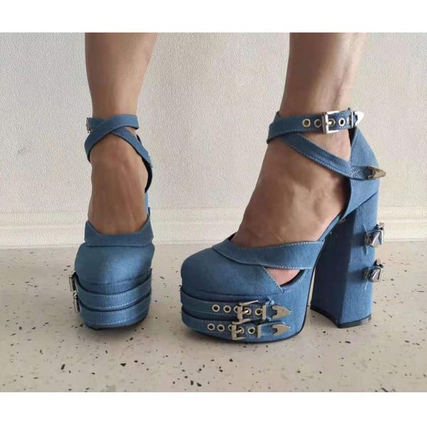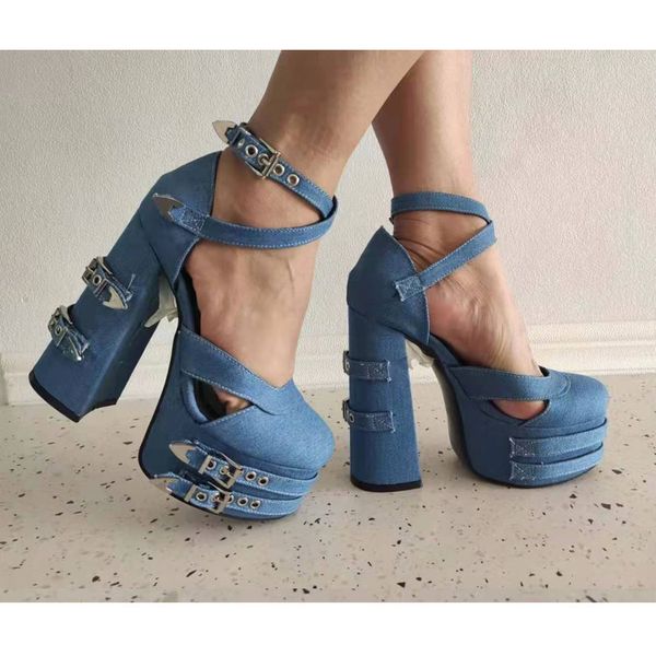 Product information: Color: blue, black Shoe Upper material: denim Size: 35,36,37,38,39,40,41,42,43,44 Wearing method: Buckle Sole material: rubber Style: European and American