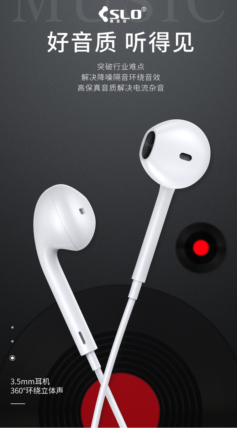 The 3.5mm round hole in-ear in-line headset is suitable for tablets, laptops, and Android wired headphones