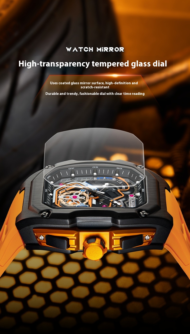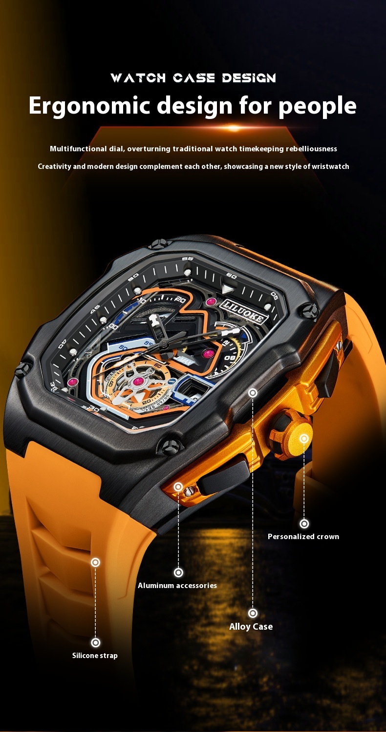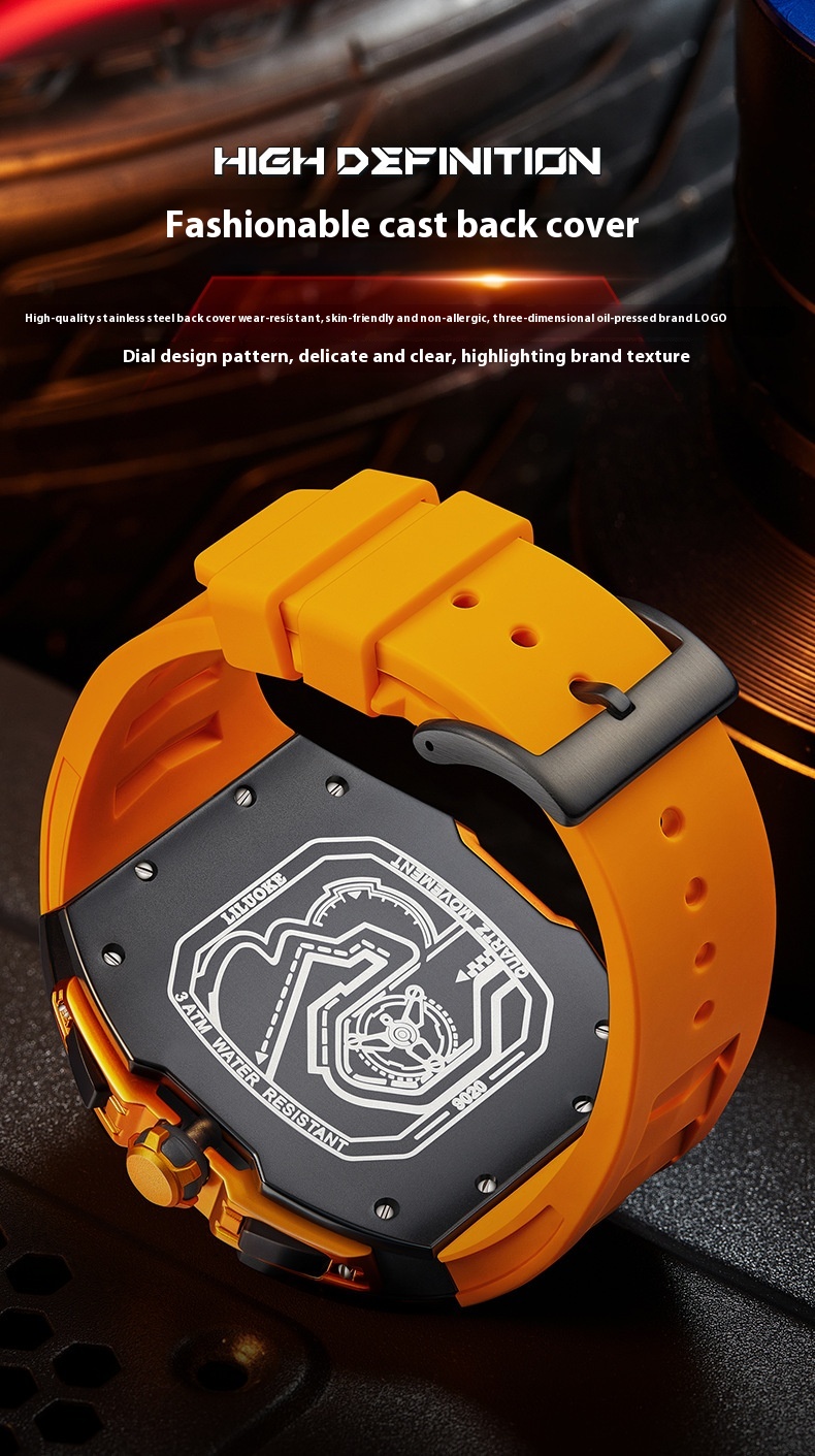 Product information:Applicable people: MaleStyle: SportsCrown type: Spiral crownMirror material: mineral reinforced glass mirrorBuckle style: pin buckleWatch-buttom material: Stainless steelDial shape: rectangleWatchcase material: Alloy