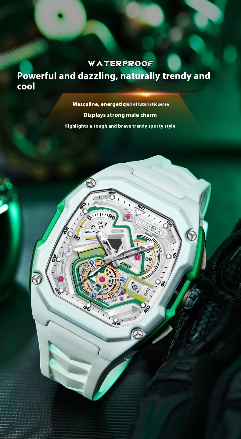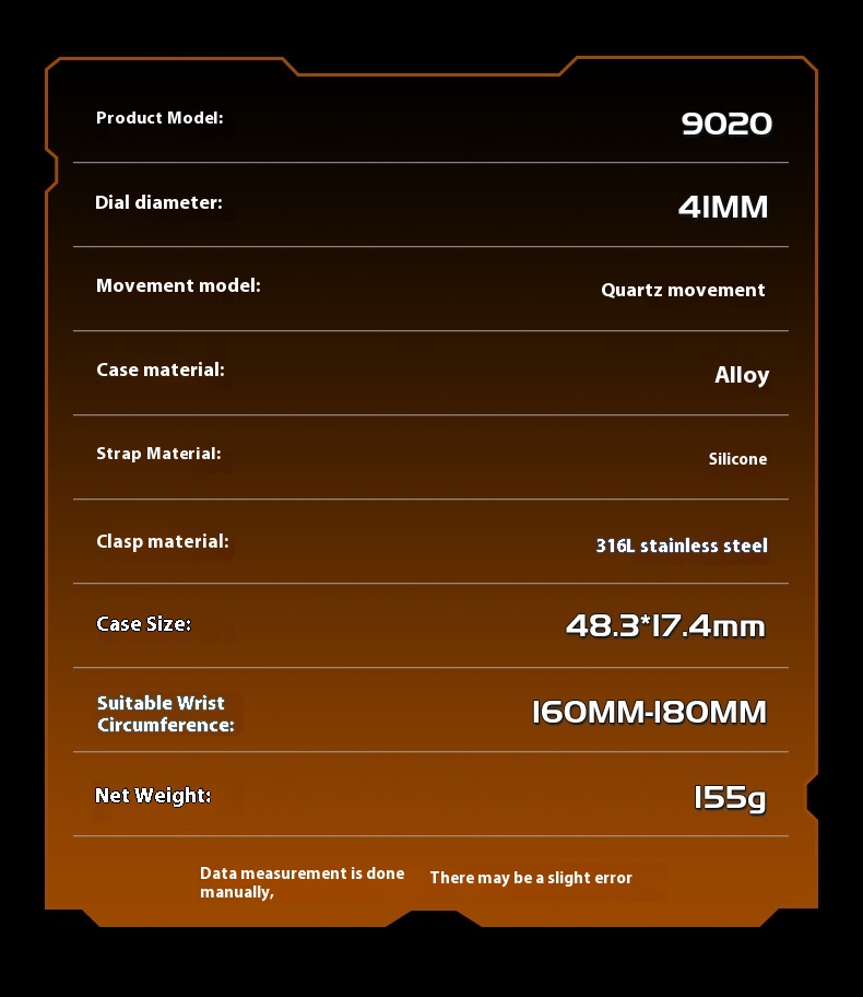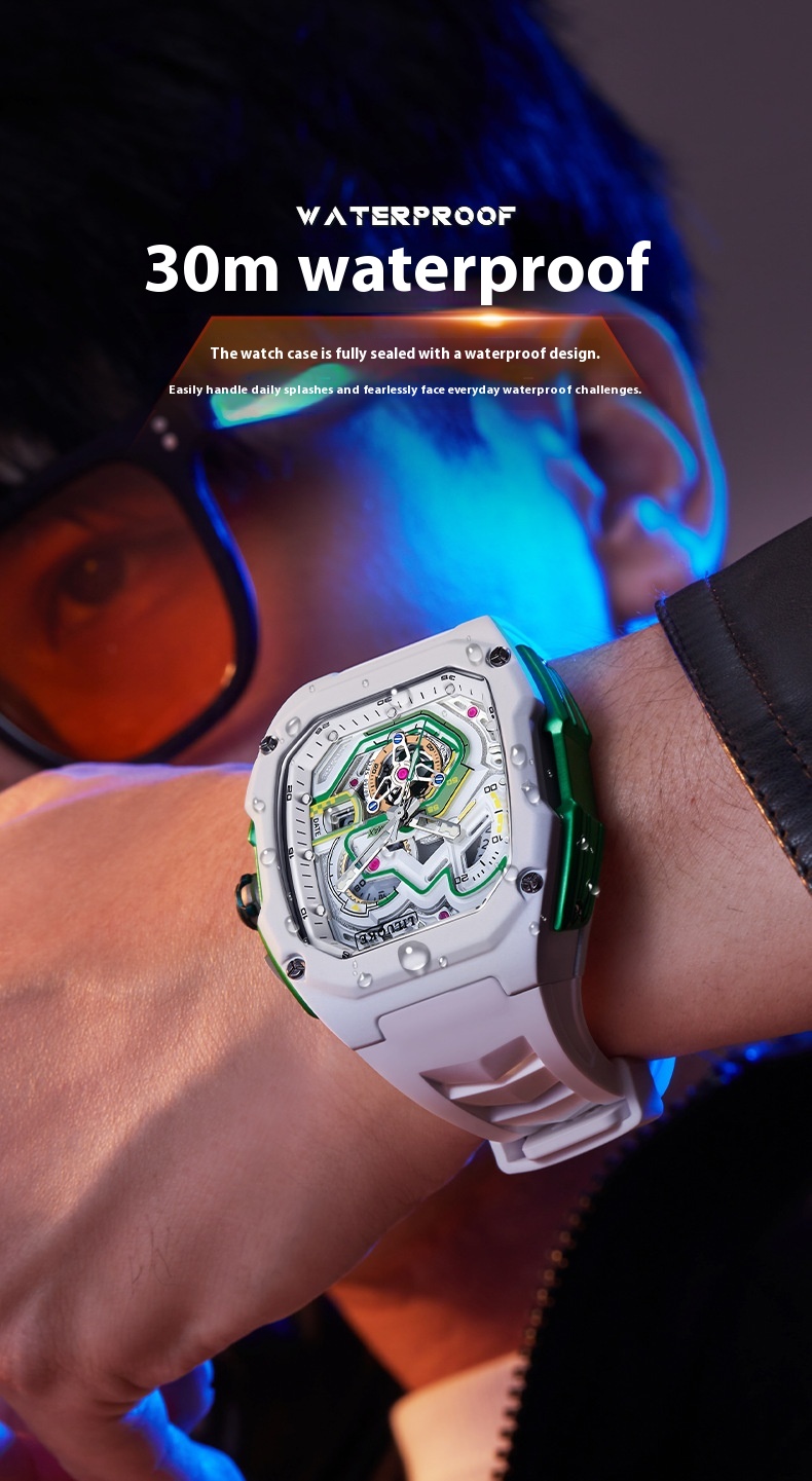 Product information:Applicable people: MaleStyle: SportsCrown type: Spiral crownMirror material: mineral reinforced glass mirrorBuckle style: pin buckleWatch-buttom material: Stainless steelDial shape: rectangleWatchcase material: Alloy