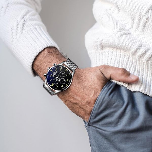 MORE ABOUT THIS PRODUCT Watch glass material: Mineral glass Housing: Stainless steel Watch strap material: Stainless steel Closure: Buckle closure Pattern: Plain Clockwork: Quartz Display: Chronograph Water-resistant: Splash water resistant