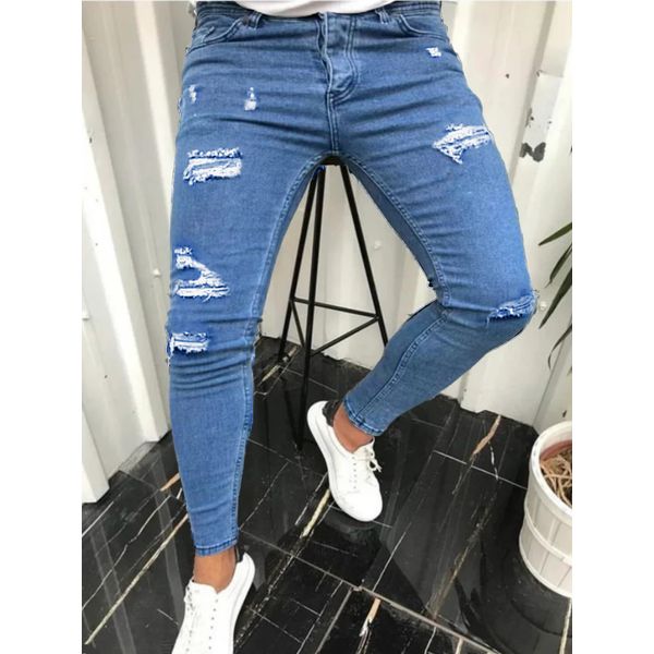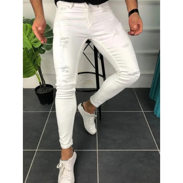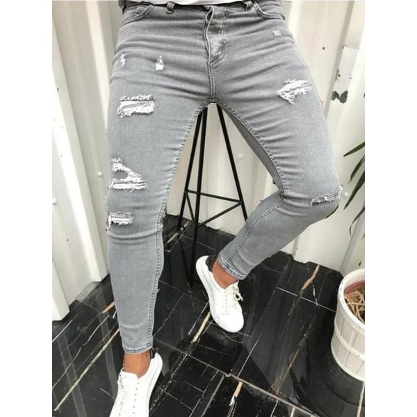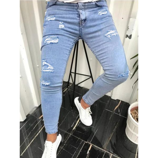 Product information: Elastic: medium elastic Pants length: trousers Waist Type: Mid waist Suitable for people: Teenagers Size: XS,S,M,L,XL,XXL Fly opening: zipper fly Style: pencil pants/leggings Thickness: ordinary Fabric name: denim Applicable scenarios: Leisure Main fabric composition: Cotton Applicable Gender: Male Pants type: tight Suitable season: spring and autumn Style: Hong Kong style Error range: 1-3cm Open leg style: Skinny
