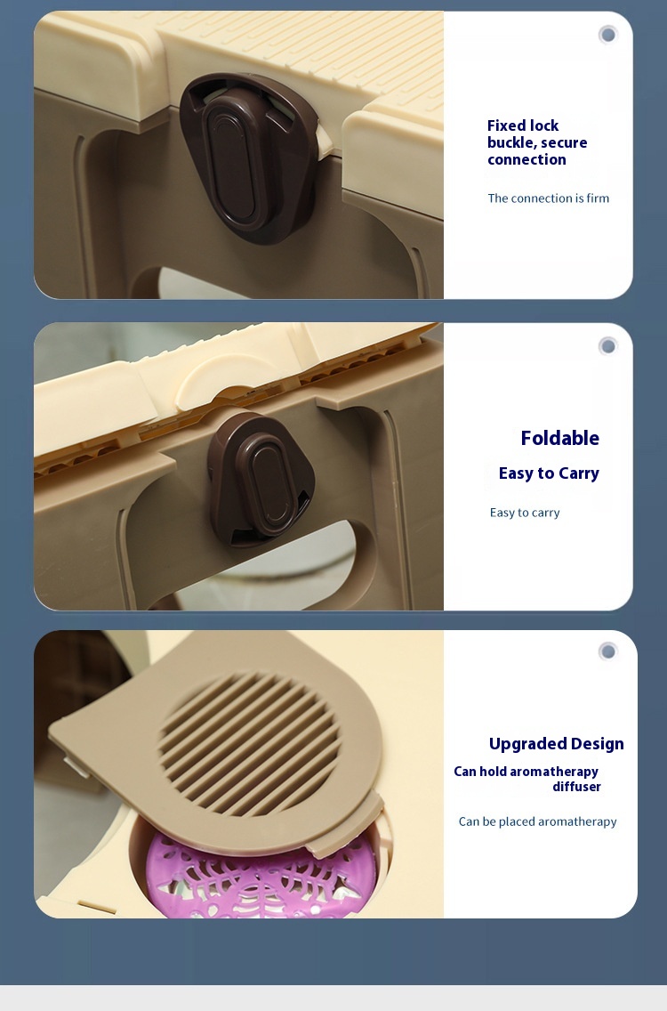 Product information:Color: khaki [new foldable toilet seat], high grade Gray [new foldable toilet seat], sapphire blue [new foldable toilet seat], white【 folding toilet seat]]Specification: foldable toilet stoolMaterial: ABSSize: 39.5*21.5 * 17.5CM