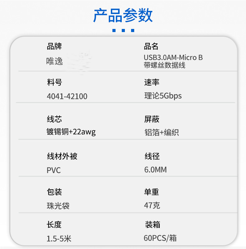 USB3.0 to Microb hard disk cable with screws, industrial camera, high-speed transmission, data connection cable can be fixed