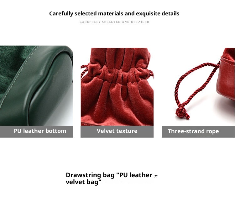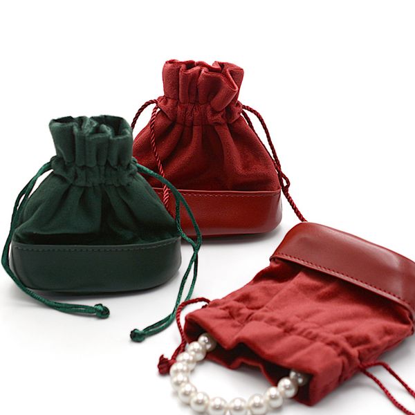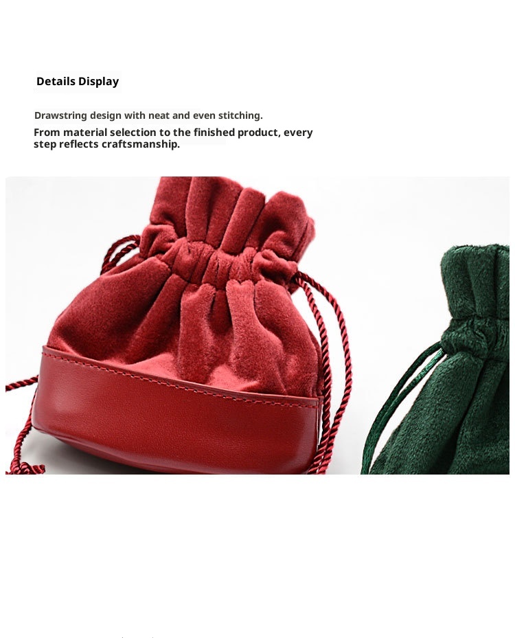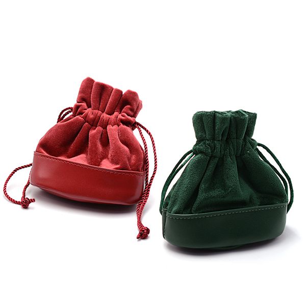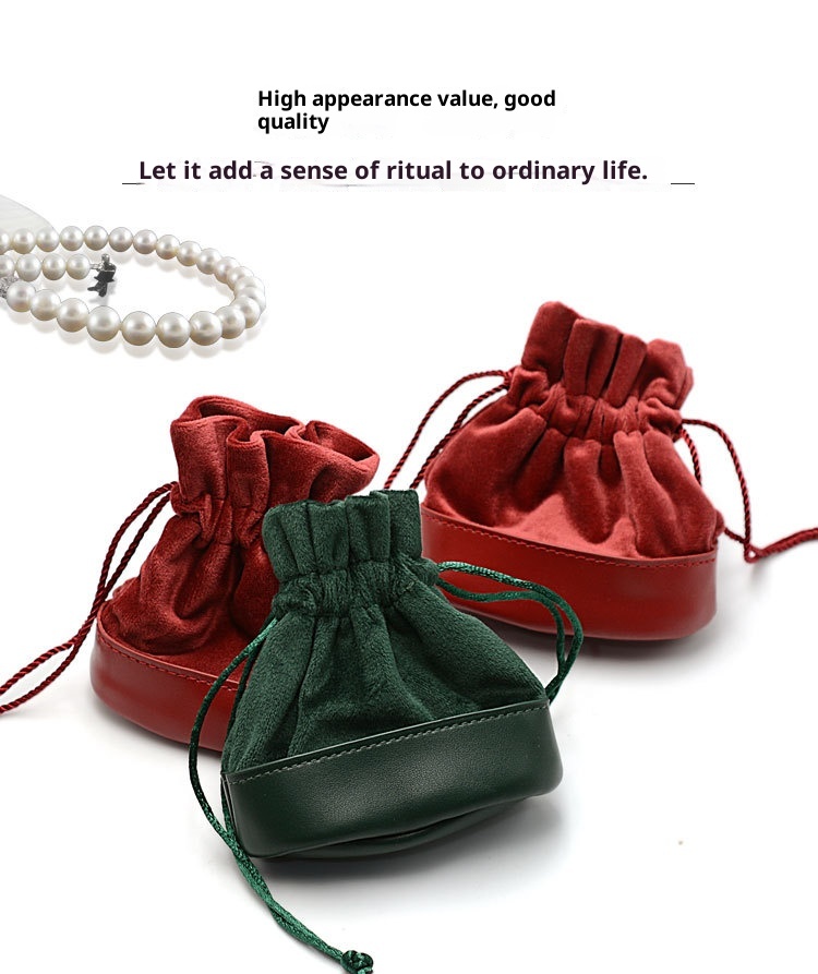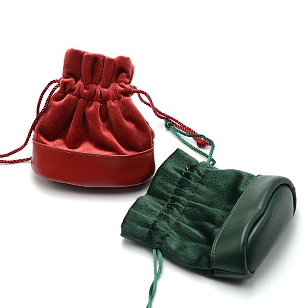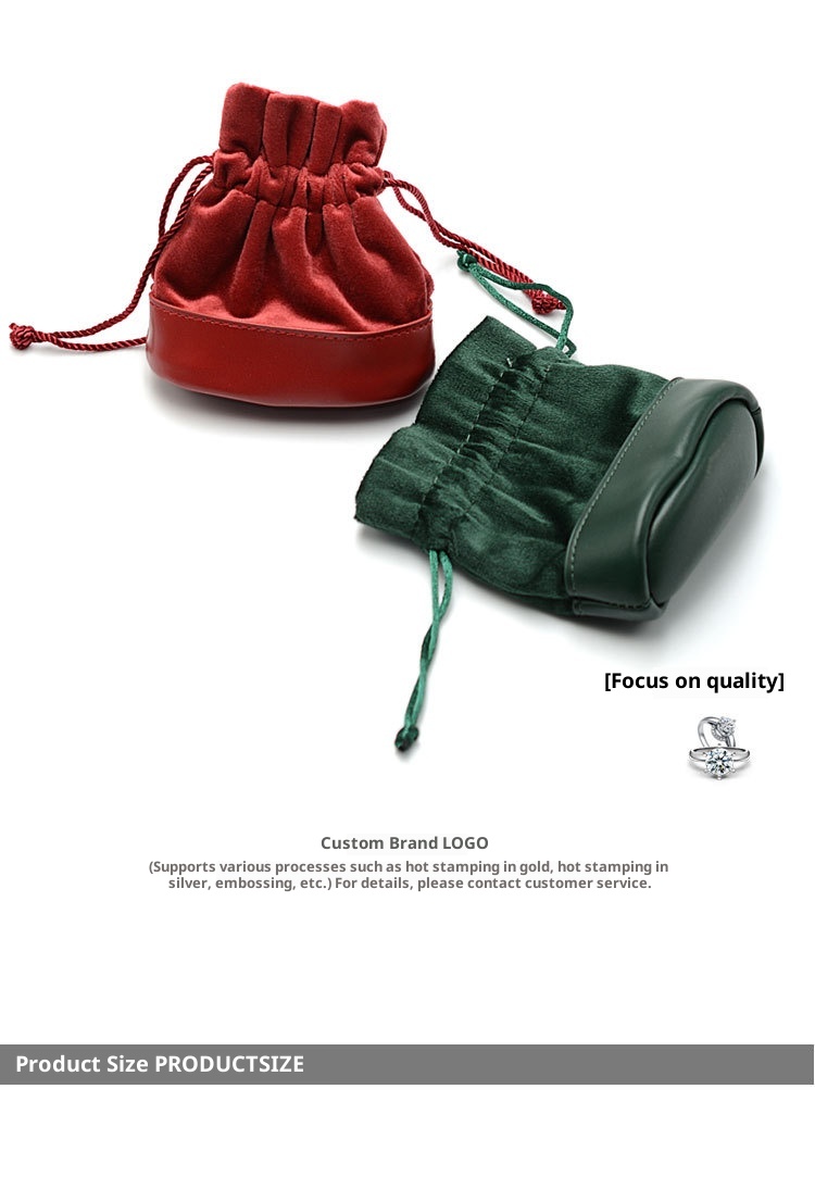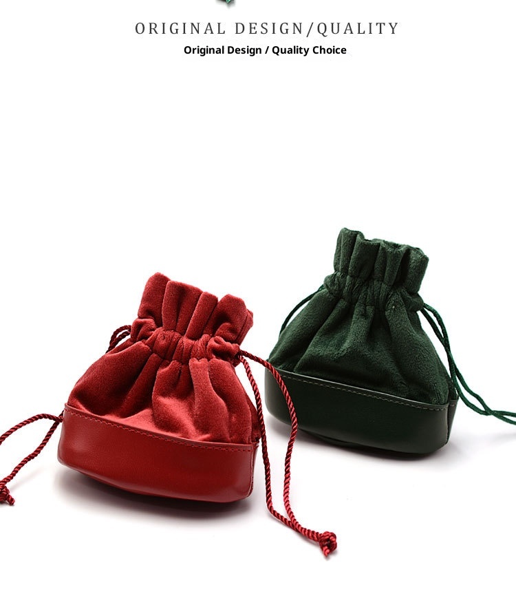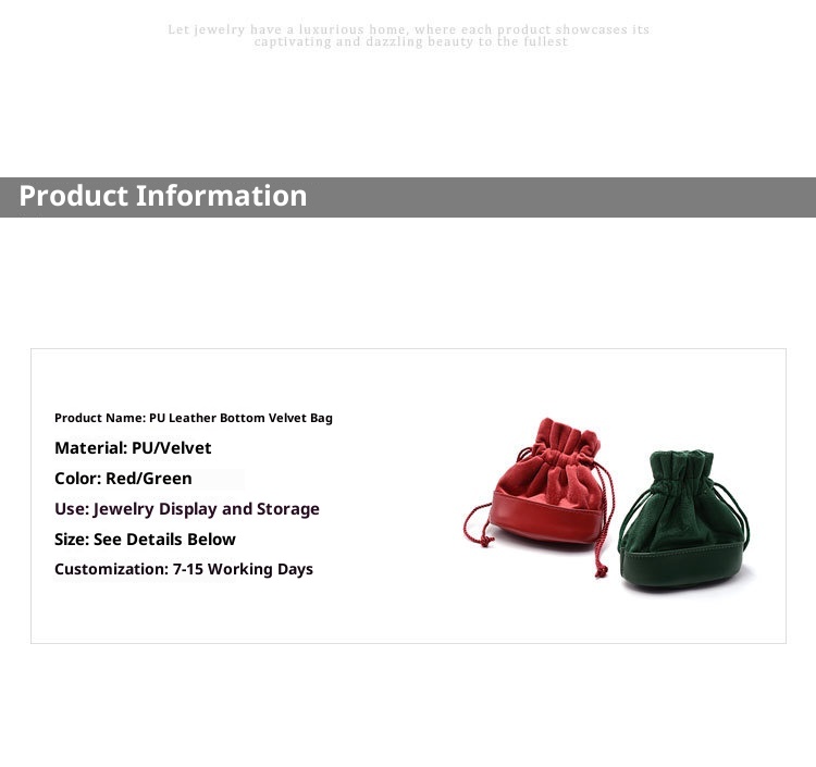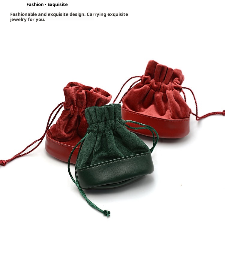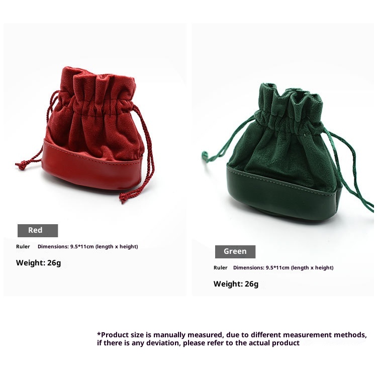 Product information:Name: PU leather bottom flannel bag Material: PU/flannel Color: red/green Purpose: Ornament display storage Size: 9.5 * 11cm (length and height)