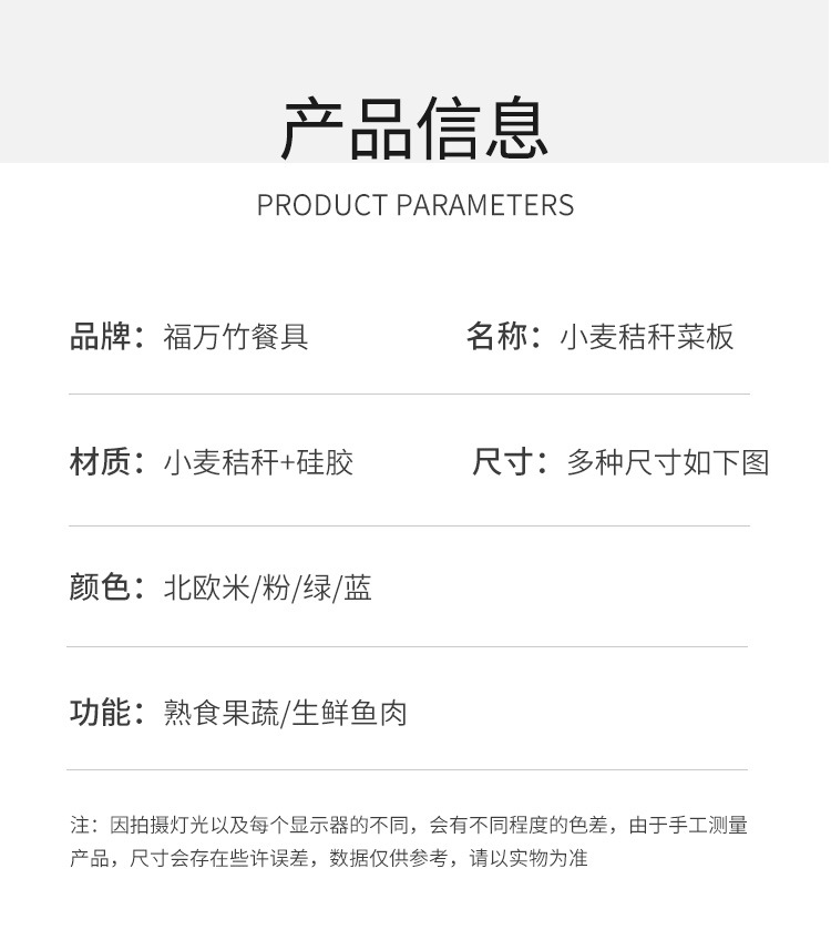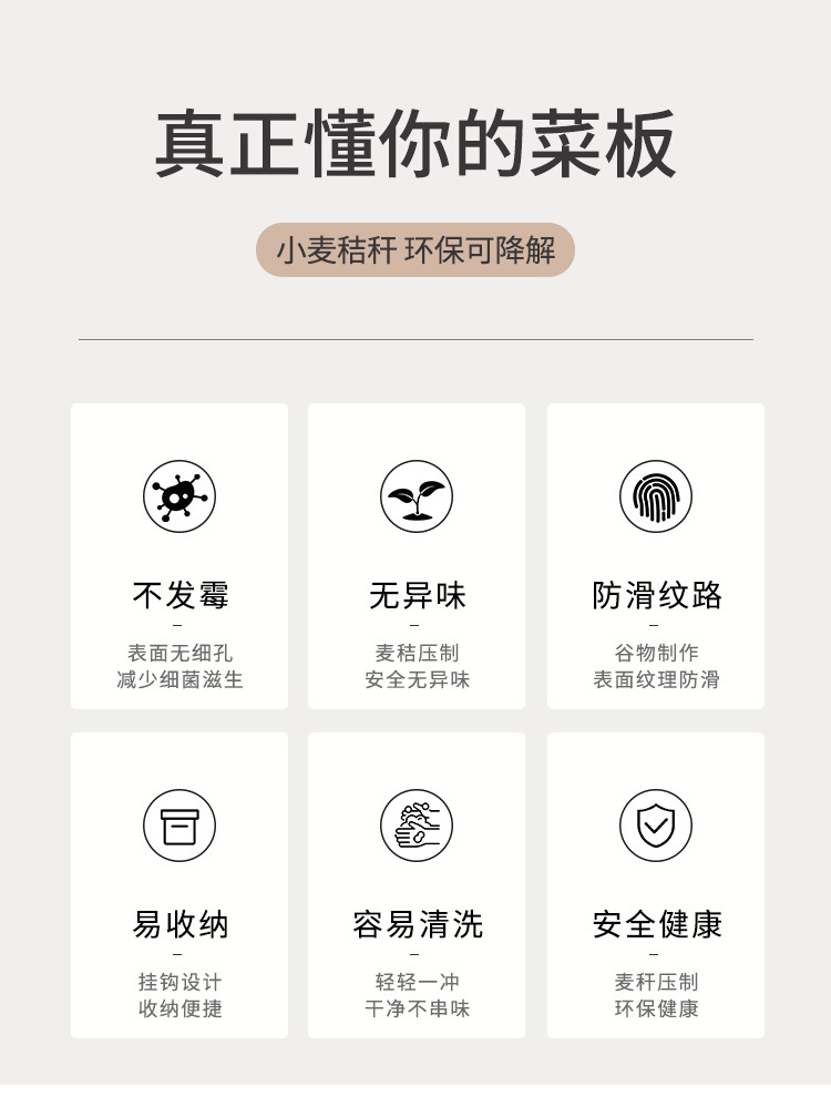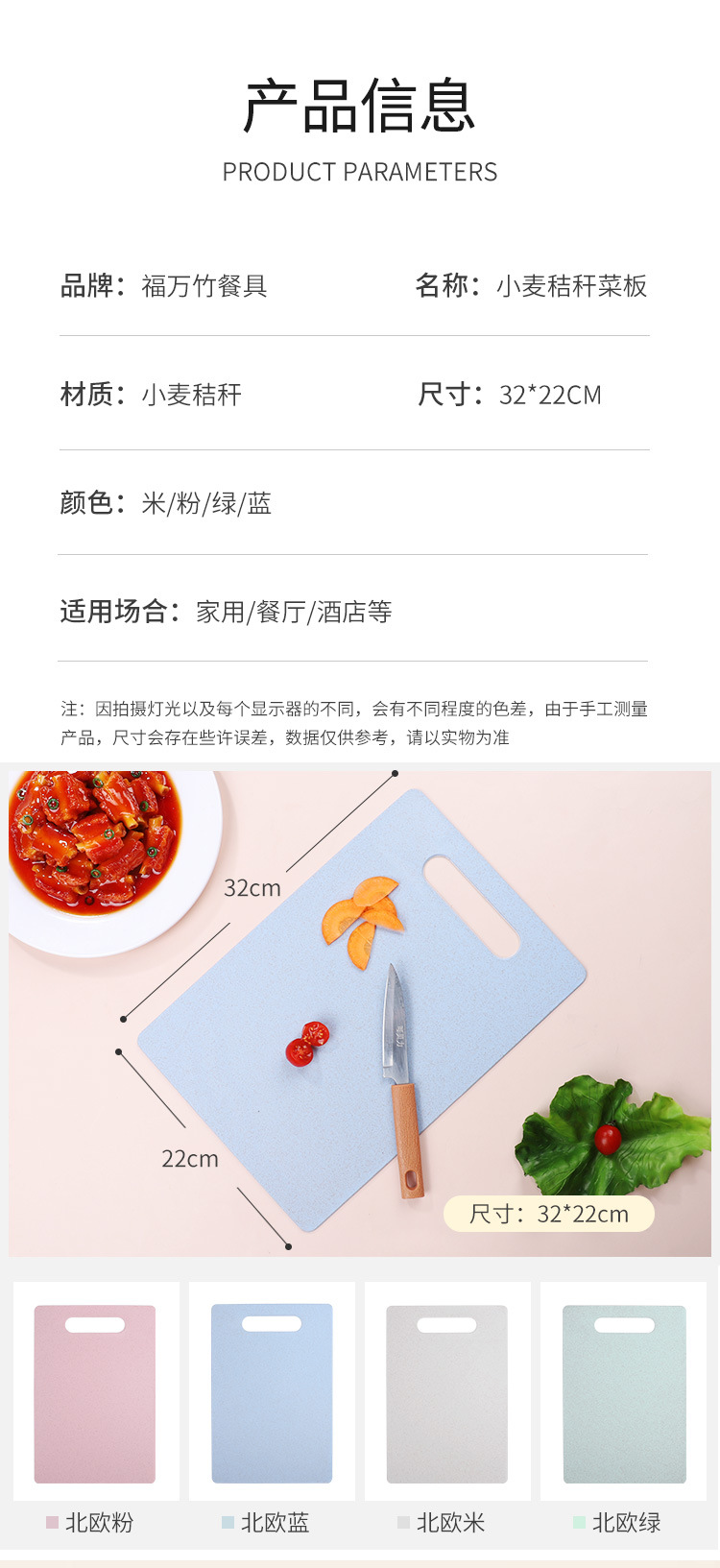 Wheat straw cutting board, mildew-proof household double-sided cutting board, cutting board, fruit cutting board, cooked food plastic sticky board