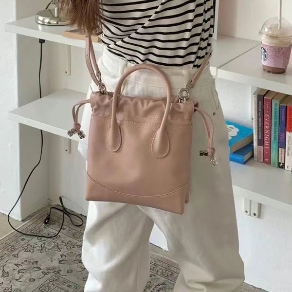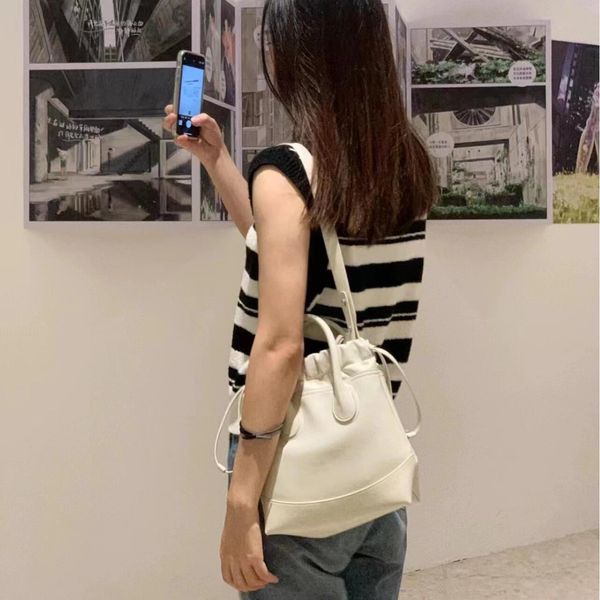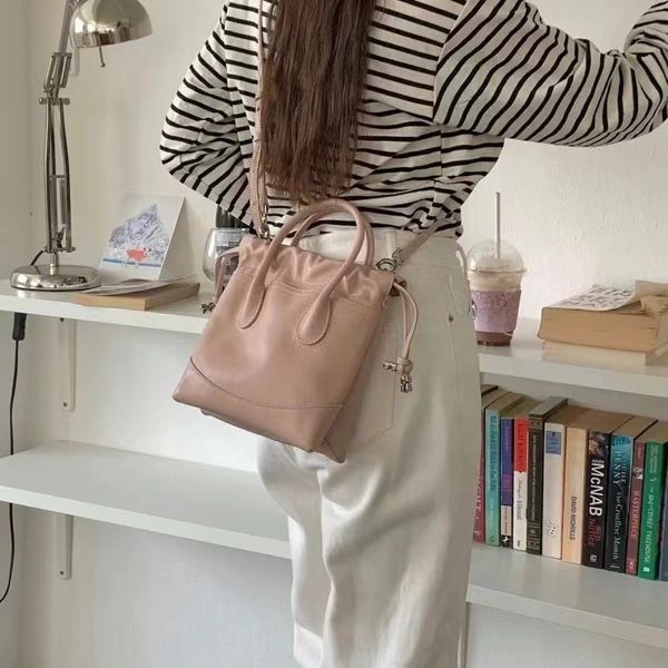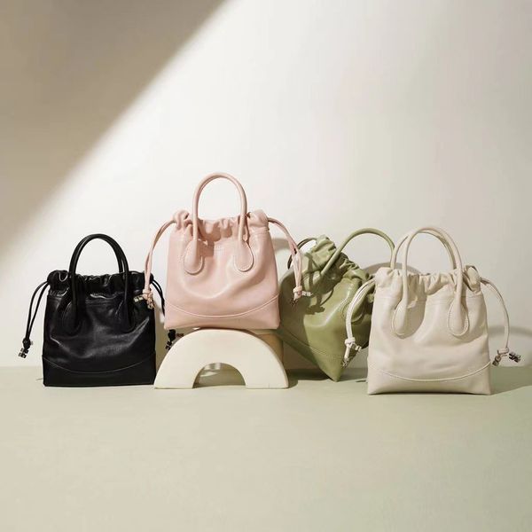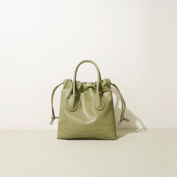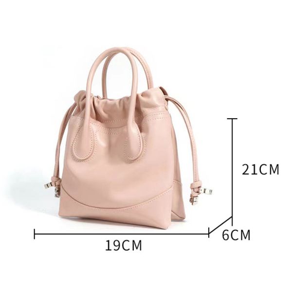 Product information:Applicable scenario: Daily configuration Color: white, grass green, black, pink Hardness: medium and soft Material: genuine leather Suitcase shape: bucket type Size: 19*21 * 6cm Style: Simple