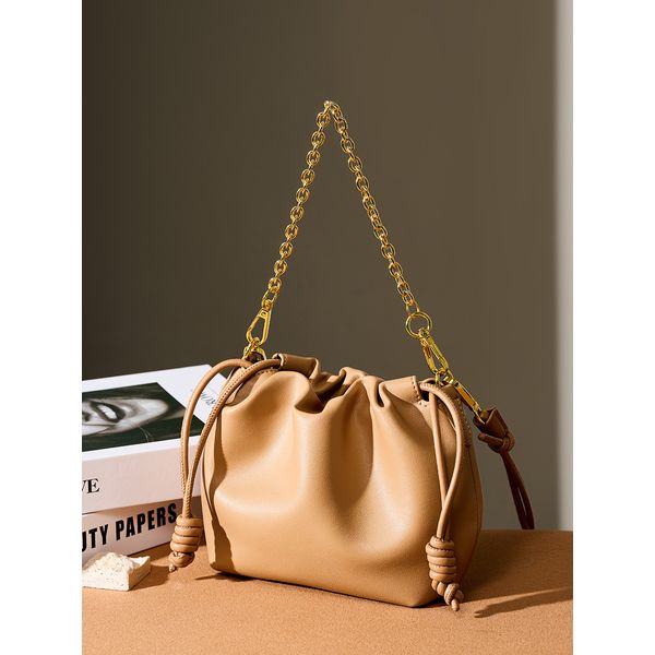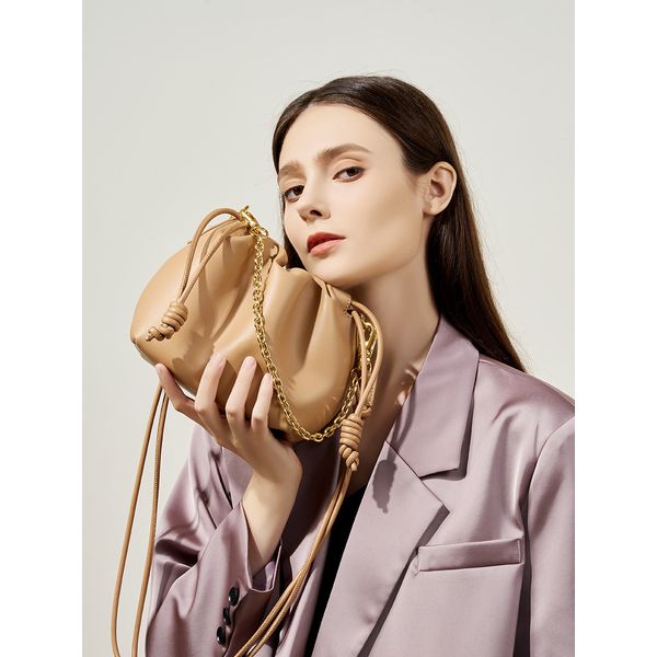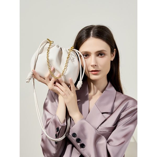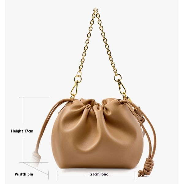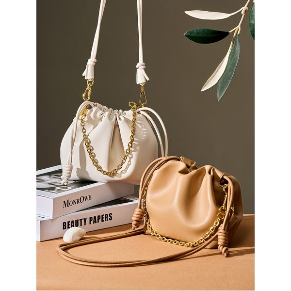 Product information:Applicable scenario: Daily configuration Color: Brown, Milky White Outer bag type: open pocket Material: genuine leather Suitcase shape: bucket type Style: Urban Simplicity
