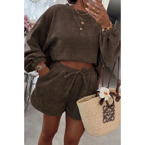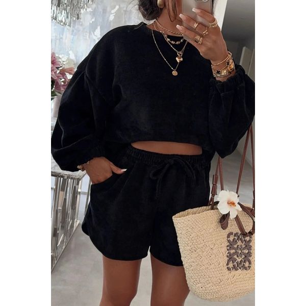 Product information:Pattern: solid color Color: black, pink, brown apricot Size: S,M,L,XL Version: Loose Style type: street fashion Popular elements: lace-up Style: pullover Fabric name: rib cloth Sleeve type: conventional sleeve Main fabric composition: Polyester (polyester fiber) Length: normal (50cm Sleeve length: long sleeve