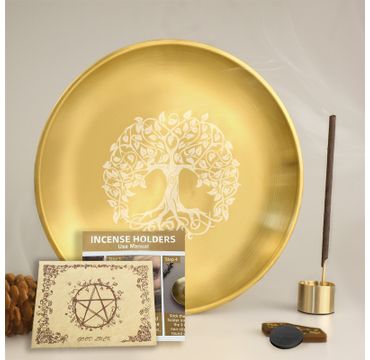 14cm Lucky Tree Steel Plate Nine-hole Incense Holder Tray Metal Candlestick Incense Burner Ceremony